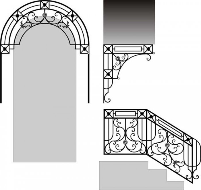 - Віконні решітки і підвазонники, перила балконів та сходів, двері;
