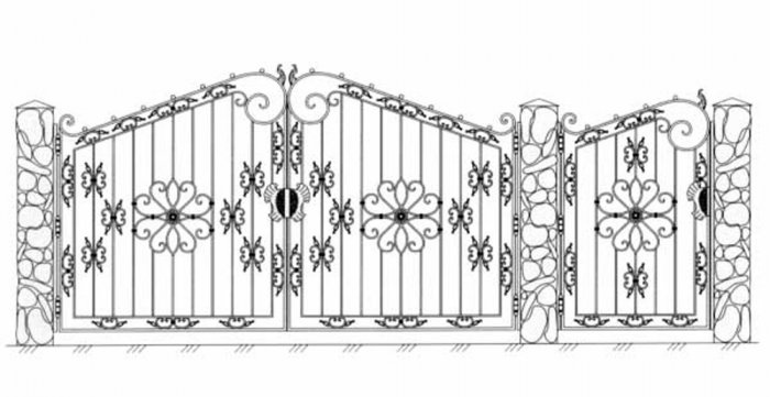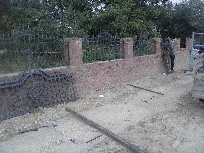 - Ворота, брами, фіртки, огорожі, стовпчики;